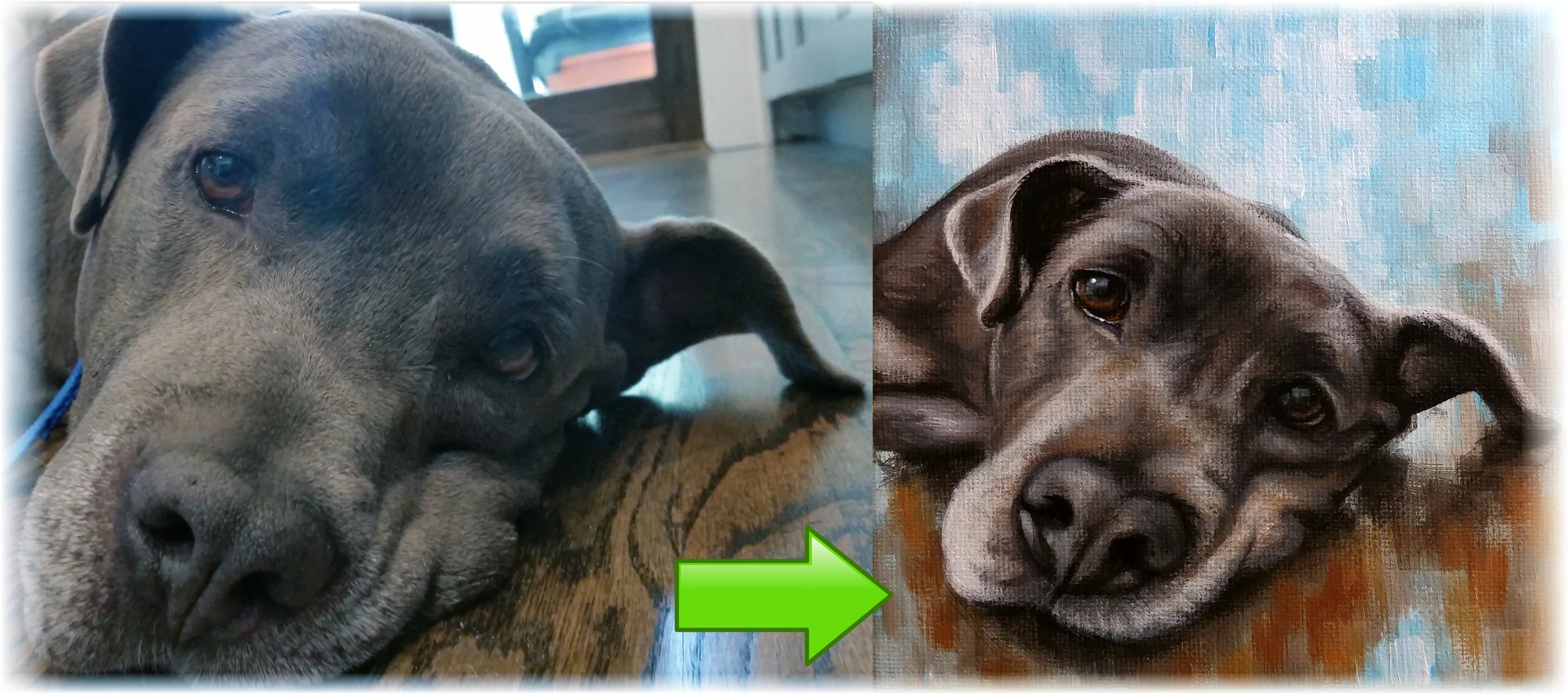 Love your pet? Need to spruce up your decor? Let me use my years of artistic experience to create a professional one-of-a-kind portrait of your cherished pet. Get a beautiful painting dedicated to your pet, give an original gift to an animal loving friend, or celebrate the memory of a pet that has passed for a loved one.